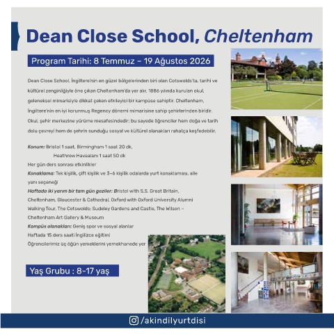 Dean Close School, İngiltere’nin en güzel bölgelerinden biri olan Cotswolds’ta, tarihi ve