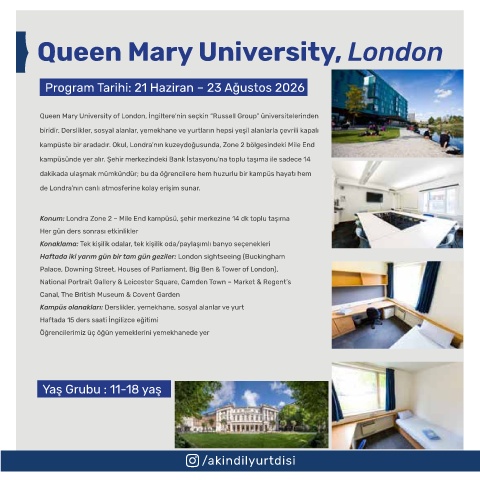 Konum: Londra Zone 2 – Mile End kampüsü, şehir merkezine 14 dk toplu taşıma