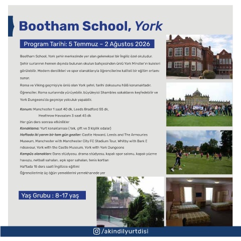 Şehir surlarının hemen dışında bulunan okulun bahçesinden ünlü York Minster’ın kuleleri